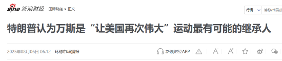 根据新浪财经此前的发文,今年2月,在他重新掌权几周后,当被问及是否认为万斯是他的继任者时,特朗普曾说“不是”,并表示当时做出这样的决定还为时过早。