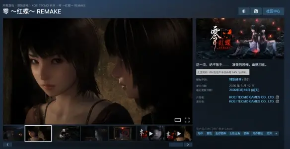 《零红蝶:重制版》现已正式发售,登陆PlayStation 5、Xbox Series、Switch 2及Steam平台。截至发稿,本作在Steam平台的好评率为84%,全部评价为“特别好评”。